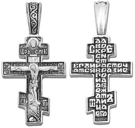 Это православное изделие - Крест выполнено методом литья из серебра 925 пробы. Поверхность изделия покрыта методом чернения (оксидирования). Изделие входит в коллекцию "Санкт - Петербург".