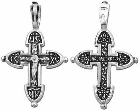 Это православное изделие - Крест выполнено методом литья из серебра 925 пробы. Поверхность изделия покрыта методом чернения (оксидирования). Изделие входит в коллекцию "Санкт - Петербург".