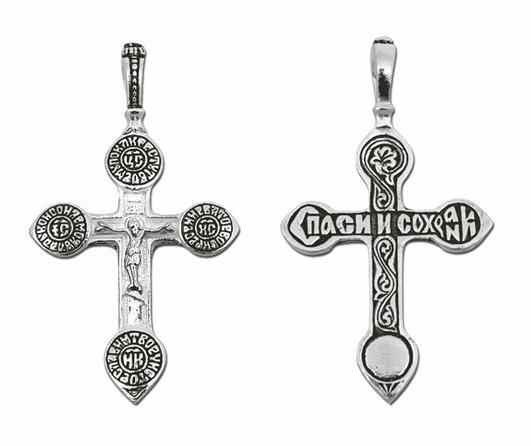 Чудесный освященный крестик из серебра 925*, покрытый чернением, являет собой результат тонкой работы ювелира; легко поддается чистке и будет радовать красотой и элегантностью долгие года.