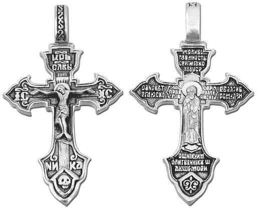 Это православное изделие - Крест выполнено методом литья из серебра 925 пробы. Поверхность изделия покрыта методом чернения (оксидирования). Изделие входит в коллекцию "Санкт - Петербург".