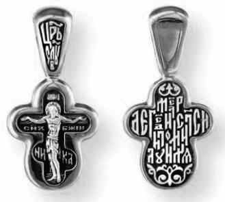Качественный освященный крестик из серебра 925*, покрытый чернением, придется по вкусу любому верующему человеку, имеет государственную ювелирную бирку, что гарантирует долгую службу.