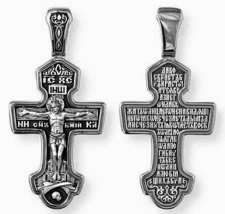 Это православное изделие - Крест выполнено методом литья из серебра 925 пробы. Поверхность изделия покрыта методом чернения (оксидирования). На изделии начертаны фрагменты молитвы "Да воскреснет Бог". Изделие входит в коллекцию "Санкт - Петербург".