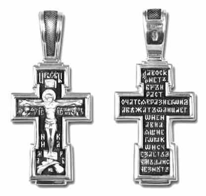 Это православное изделие - Крест выполнено методом литья из серебра 925 пробы. Поверхность изделия покрыта методом чернения (оксидирования). На изделии начертаны фрагменты молитвы "Да воскреснет Бог". Изделие входит в коллекцию "Санкт - Петербург".