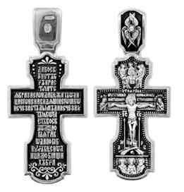 Это православное изделие - Крест выполнено методом литья из серебра 925 пробы. Поверхность изделия покрыта методом чернения (оксидирования). На изделии начертаны фрагменты молитвы "Кресту твоему поклоняемся Владыко и святое воскр". Изделие входит в коллекцию "Санкт - Петербург".