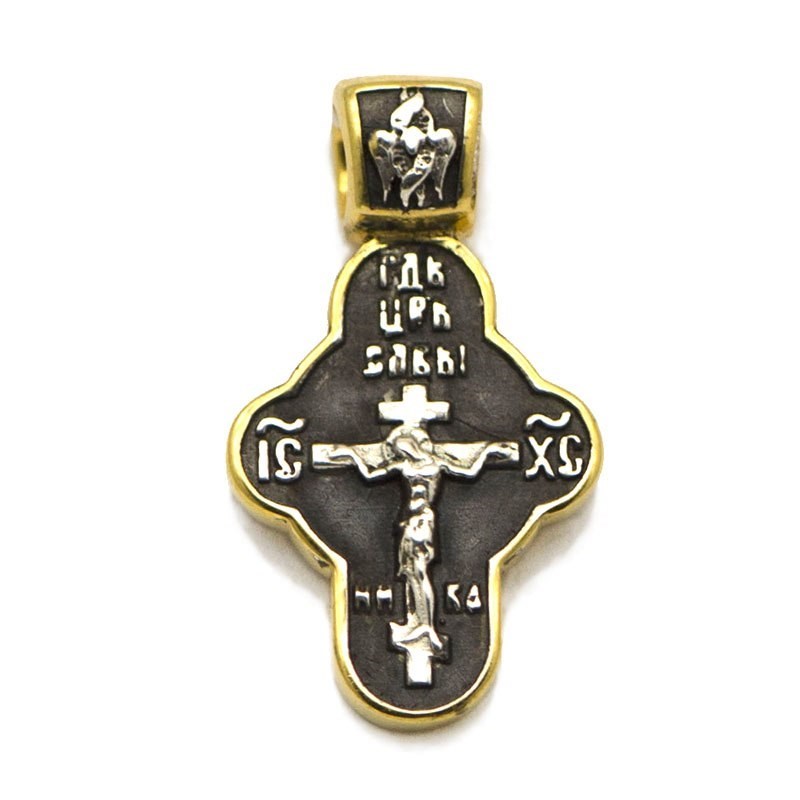 Это православное изделие - Крест выполнено из серебра 925 пробы. Поверхность изделия покрыта красной позолотой 585 пробы. На изделии начертаны фрагменты молитвы "Спаси и сохрани".