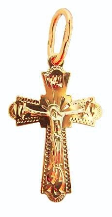 Красивый освященный крестик из серебра 925*, покрытый красной позолотой 585*, придется по вкусу любому верующему человеку, имеет государственную ювелирную бирку, что гарантирует долгую службу.