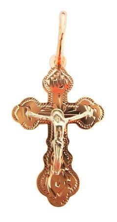 Качественный освященный крестик из серебра 925*, покрытый красной позолотой 585*, будет ценным подарком любому верующему человеку, имеет государственную ювелирную бирку, что гарантирует долгую службу.