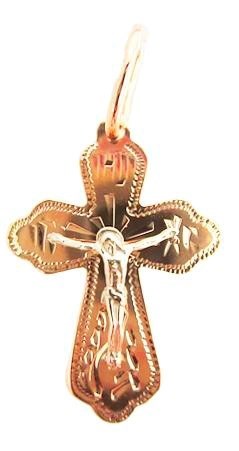 Отличный освященный крестик из серебра 925*, покрытый красной позолотой 585*, придется по вкусу любому верующему человеку, имеет государственную ювелирную бирку, что гарантирует долгую службу.
