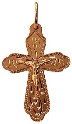 Прекрасный освященный крестик из серебра 925*, покрытый красной позолотой 585*, являет собой результат тонкой работы ювелира; легко поддается чистке и будет радовать красотой и элегантностью долгие года.