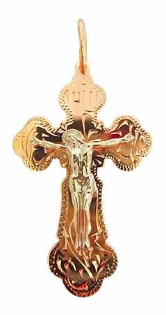 Прекрасный освященный крестик из серебра 925*, покрытый красной позолотой 585*, являет собой результат тонкой работы ювелира; легко поддается чистке и будет радовать красотой и элегантностью долгие года.