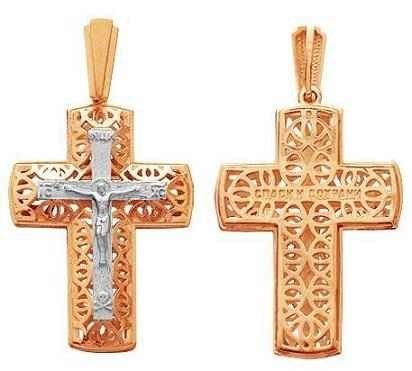 Хороший освященный крестик из серебра 925*, покрытый красной позолотой 585*, являет собой результат тонкой работы ювелира; легко поддается чистке и будет радовать красотой и элегантностью долгие года.