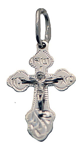 Красивый освященный крестик из серебра 925*, покрытый родием, будет ценным подарком любому верующему человеку, имеет государственную ювелирную бирку, что гарантирует долгую службу.