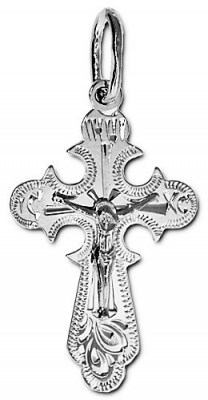 Интересный освященный крестик из серебра 925*, покрытый родием, никого не оставит равнодушным, и является символом истинной веры для каждого человека.