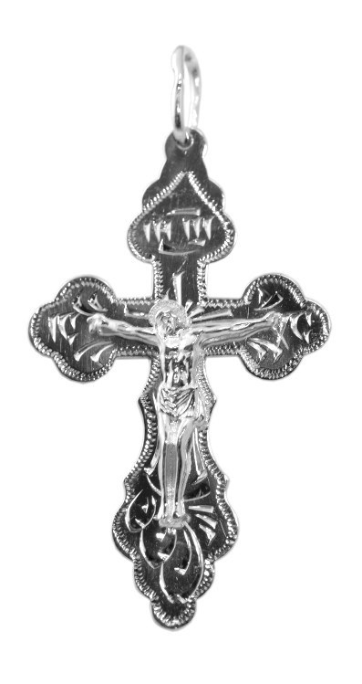Качественный освященный крестик из серебра 925*, покрытый родием, обладает безупречной эстетикой; мы поможем подобрать подходящий комплект к изделию.