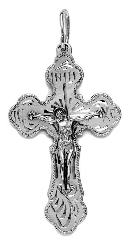 Отличный освященный крестик из серебра 925*, покрытый родием, придется по вкусу любому верующему человеку, имеет государственную ювелирную бирку, что гарантирует долгую службу.