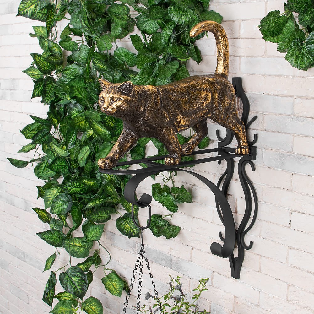 Независимость «Я — кот, хожу, где вздумается, и гуляю сам по себе» - говорил Кот Женщине в сказке Редьярда Киплинга. Попытки приручить это свободное, дикое по своей натуре животное идут уже давно. И каждый раз хозяева удивляются, кто же в итоге кого «воспитал»: они кота или кот их. Оригинальность Мастерам фабрики «BOGACHO» удалось сделать почти невозможное - приручить кота. Теперь это своенравное, свободное животное грациозно идёт по кронштейну для цветов и встречает ваших гостей. «Welcome. Добро пожаловать. Мы рады вас видеть, дорогие гости. Я рад.» - говорит весь его вид. Качество Фигура кота выполнена вручную мастерами «BOGACHO» из композитного материала - GRC (glass reinforced composite – армированный стеклокомпозит), основу которого составляет стекловолокно нового поколения в соединении с полиэфирными смолами французского производства. Кронштейн выполнен из кованой стали. Обращаем Ваше внимание, что цветочный горшок в комплект не входит.