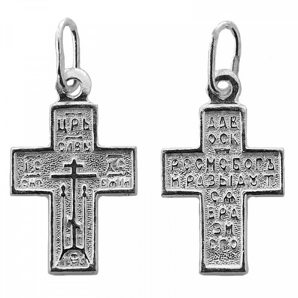 Крест серебрянный, с корундами, Да воскреснет Бог..., Эпифания, 1.09 гр., арт. ПР.К.000148