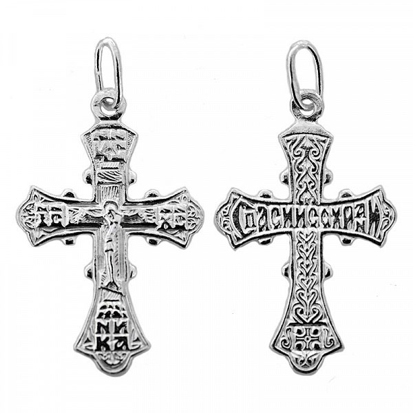 Крест серебрянный, с корундами, Спаси и сохрани, Эпифания, 1.44 гр., арт. ПР.К.000141