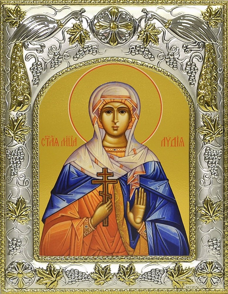 Икона выполнена на дереве профессиональными красками в технике шелкография на сусальном золоте. Лик "Лидия" покрыт тремя слоями лакачто гарантирует долговечность и защиту изображения. Икона представлена в размере 24х30 сантиметра. Итальянский оклад изготовлен по уникальной технологии из металлической основы и покрыт серебром 925 пробы и золотом 585 пробычто подтверждено производственным клеймом. С тыльной стороны иконы прикреплен сертификат о соответствии. Киот иконы выполнен из массива дерева (липабереза или сосна) и украшен резной багетной рамкой. Уникальное музейное стекло в киоте не дает бликов и защищает икону от пыли и выцветания.