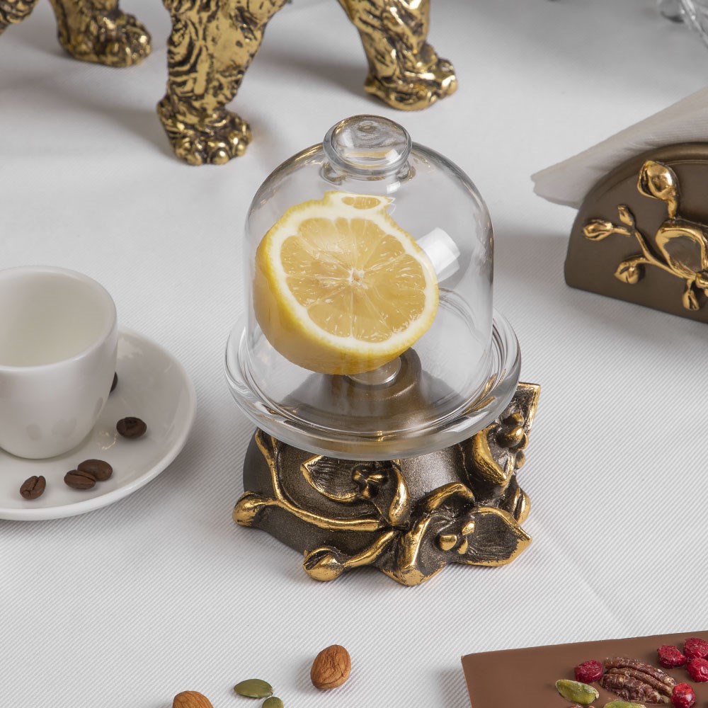 Благодаря прочности материалов лимонница Орхидея Лайм Бронза идеально подходит для ежедневного использования. Лимонница доставляется в отдельной крафтовой коробке, все детали изделия плотно уложены в пену для лучшей транспортировки. Вы можете отделить стеклянную часть от мраморной подставки для тщательного ухода в посудомоечной машине. Подставка лимонницы изготовлена из натурального коелгинского мрамора, отшлифована, а затем патинирована вручную.