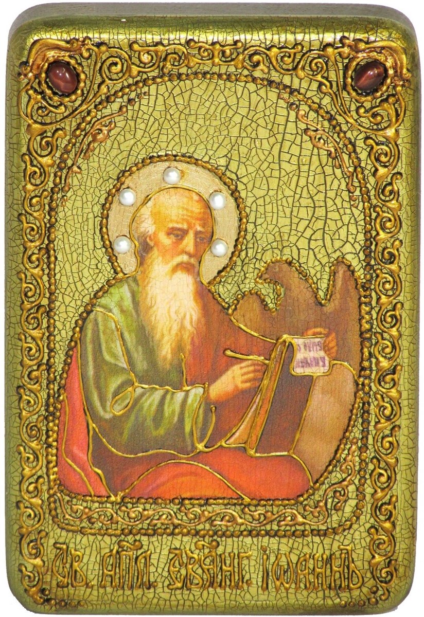 Настольная икона Святой апостол и евангелист Иоанн Богослов на мореном дубе 15х10, арт. 20767