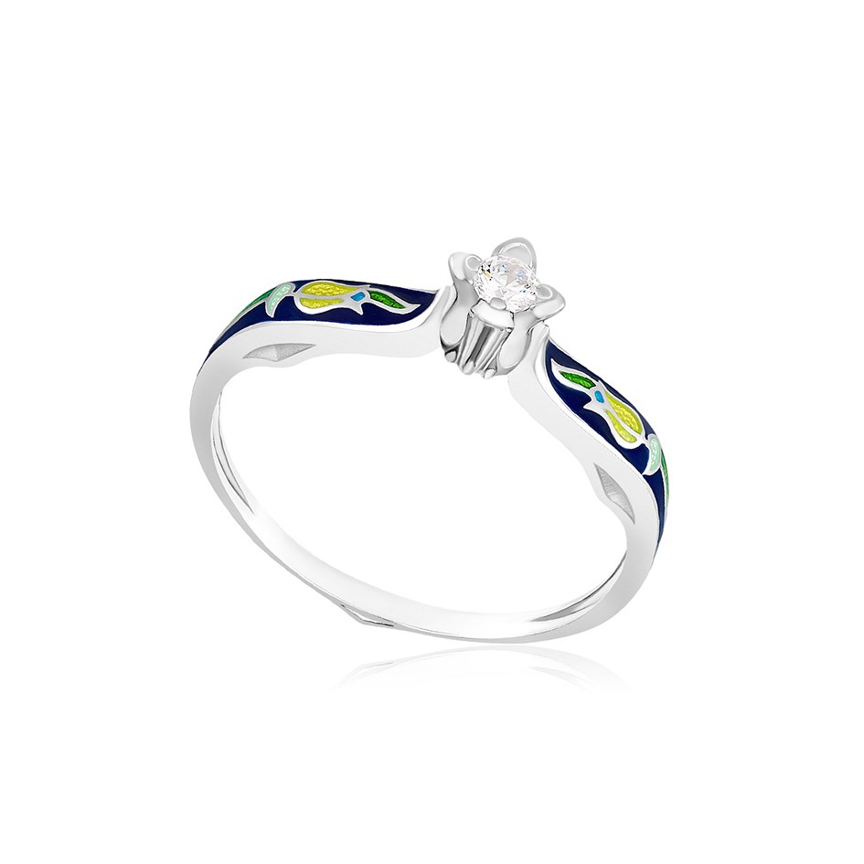 Серебряное кольцо с фианитом «Примавера», выполненное в серебре 925* по технологии горячего эмалирования.