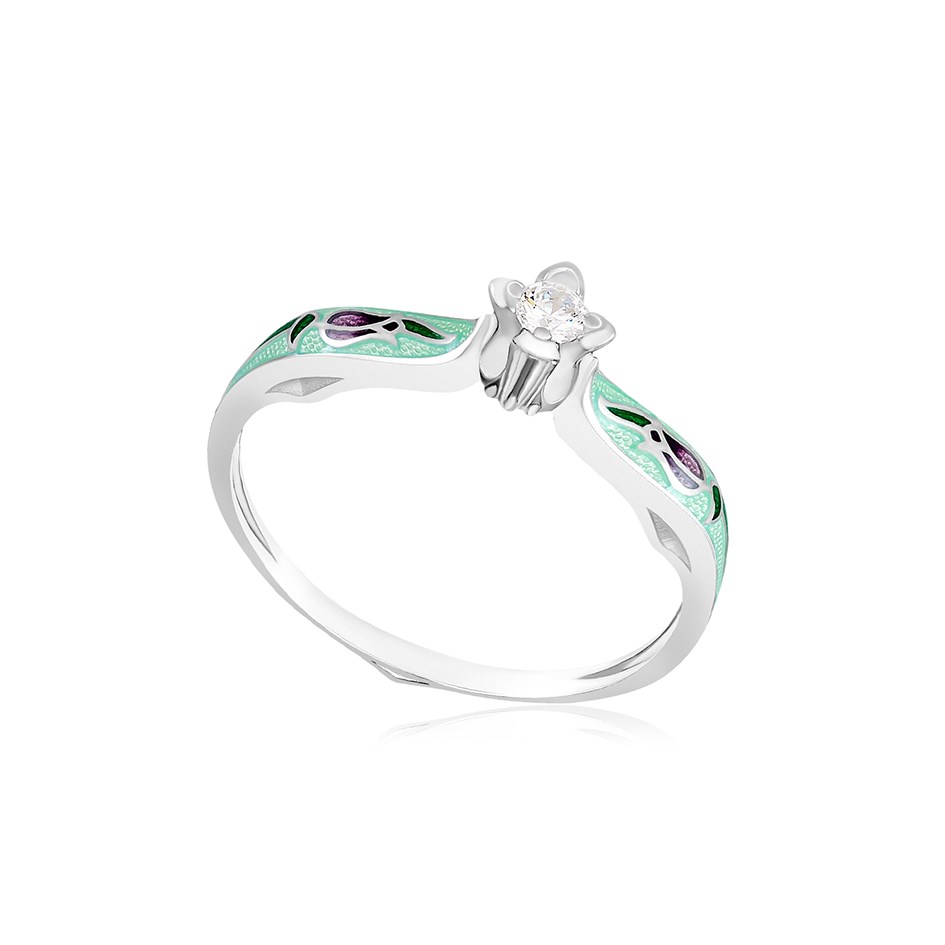 Серебряное кольцо с фианитом «Примавера», выполненное в серебре 925* по технологии горячего эмалирования.