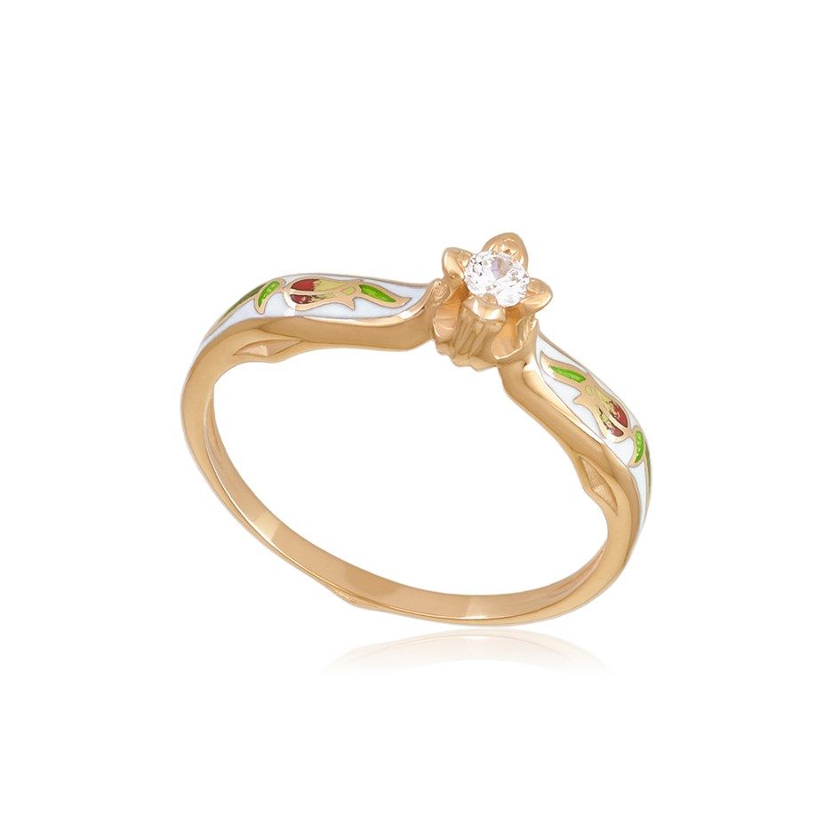 Серебряное кольцо с фианитом «Примавера», выполненное в серебре 925* с золочением 999* по технологии горячего эмалирования.