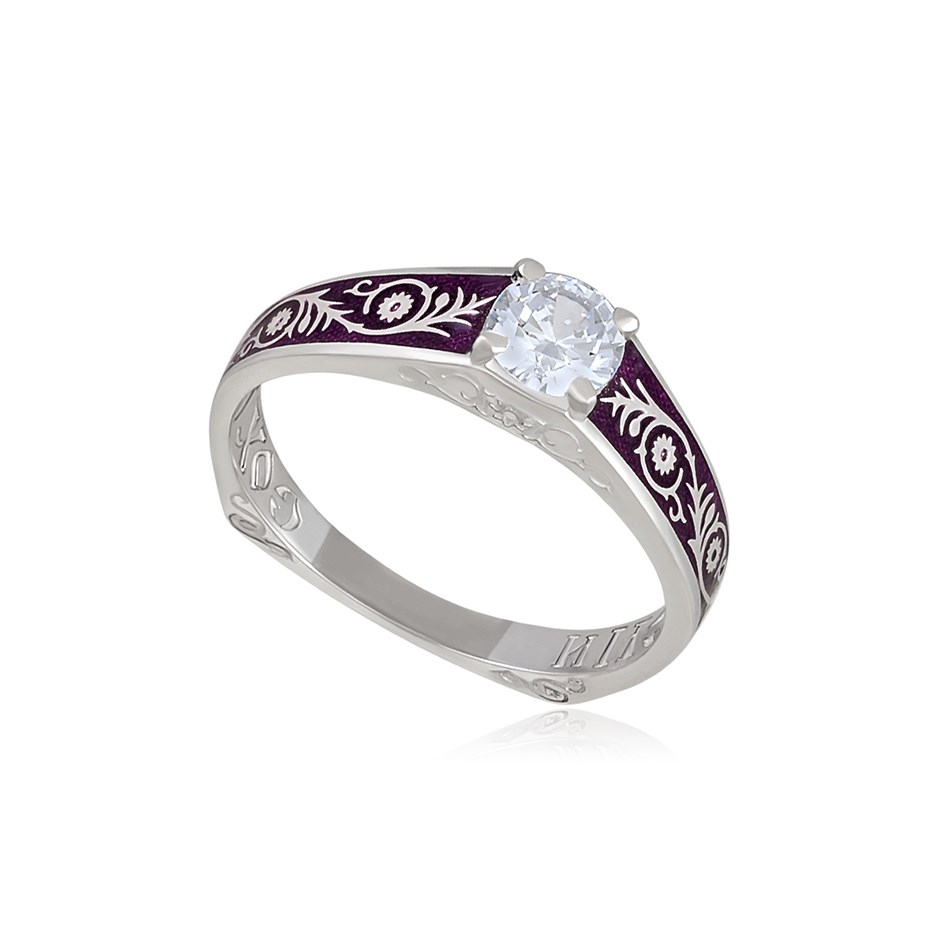 Перстень серебряный «Спас на крови», фиолетовый с фианитами