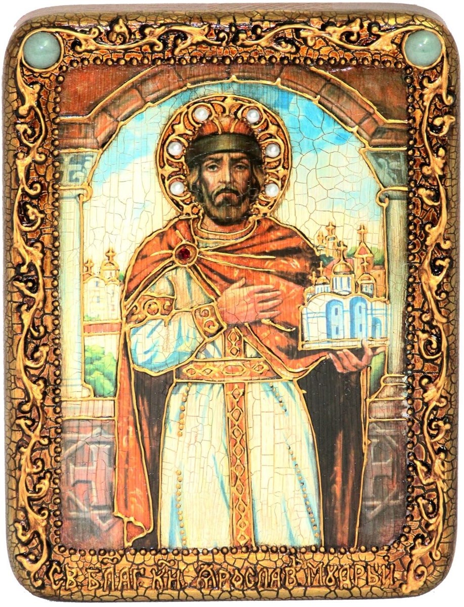 Подарочая икона Святой Благоверный князь Ярослав Мудрый на мореном дубе 20х15, арт. 20816