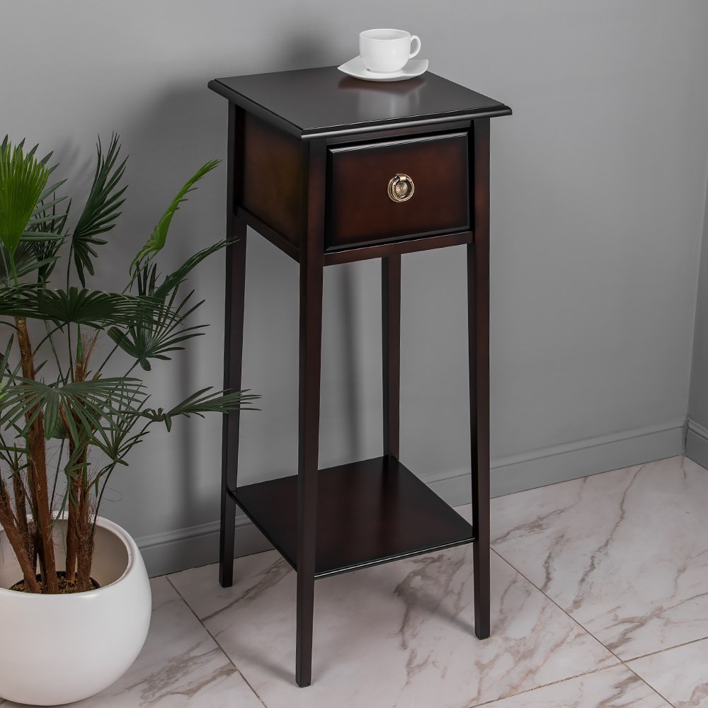 Корпус подставки Жаклин 3 Орех Оберджин произведён из МДФ. Изделие подойдёт для спальни, гостиной, детской комнаты в качестве прикроватного столика, подставки для светильников или статуэток. Также Вы можете выстроить композицию из подставок разной высоты, что придаст интерьеру особенную «изюминку».