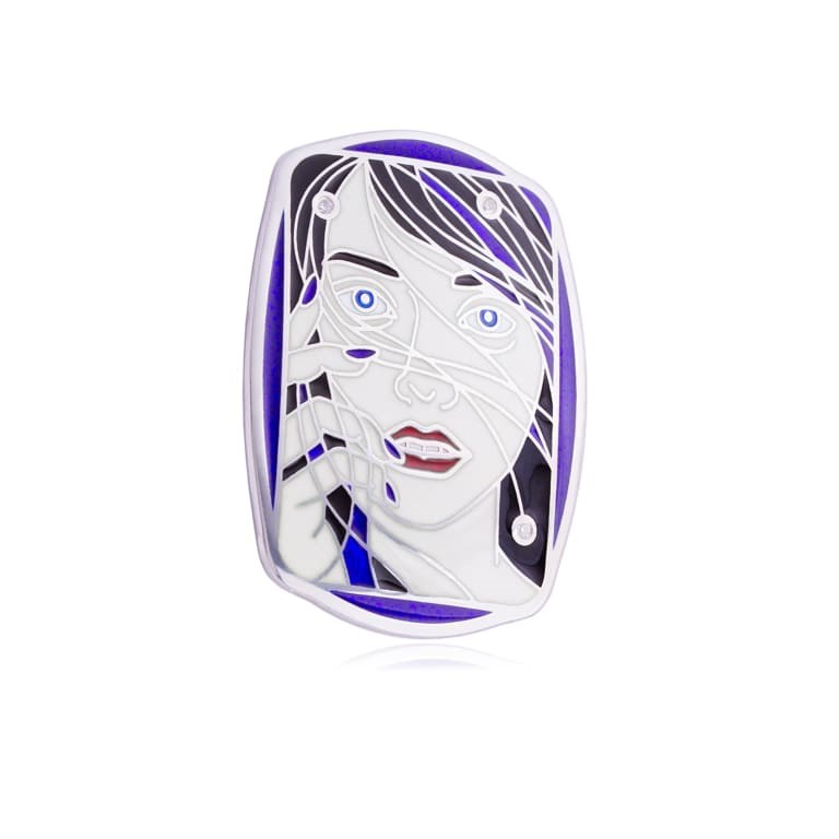 Брошь-подвеска «Нимфа» выполнена из серебра 925 пробы по технологии горячего эмалирования и дополнена фианитами. Изделие включает в себя ушко для ношения в качестве подвески, а также имеет крепление для ношения в качестве броши.