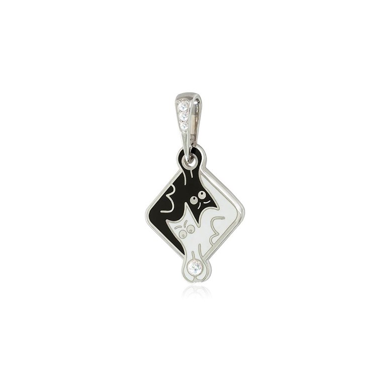 Подвеска из серебра «Котики Инь-Ян», черно-белая