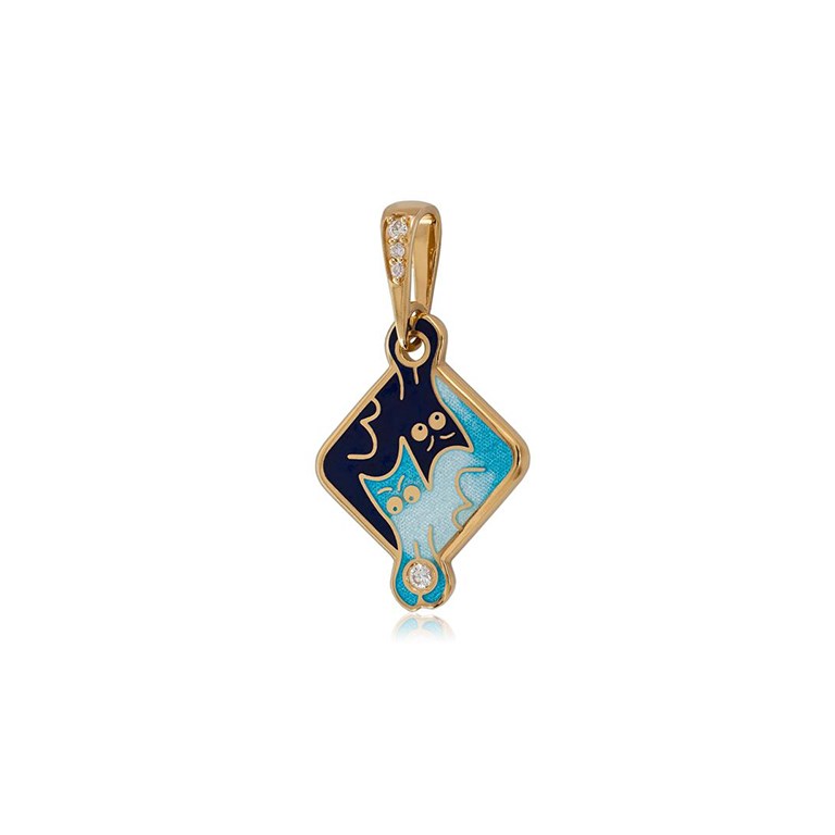 Подвеска из серебра «Котики Инь-Ян» (золочение), синяя с фианитами