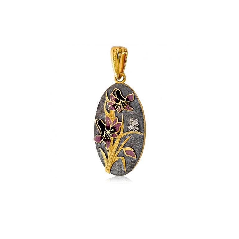 Подвеска «Лилии» выполнена из серебра 925-й пробы с чернением и золочением 999-й пробы по технологии горячего эмалирования.