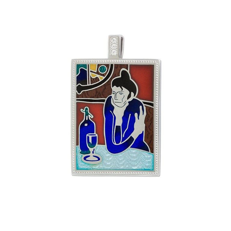Ювелирная реплика всемирно известной картины Пабло Пикассо «Любительница абсента» выполнена из серебра 925 пробы по технологии горячего эмалирования.