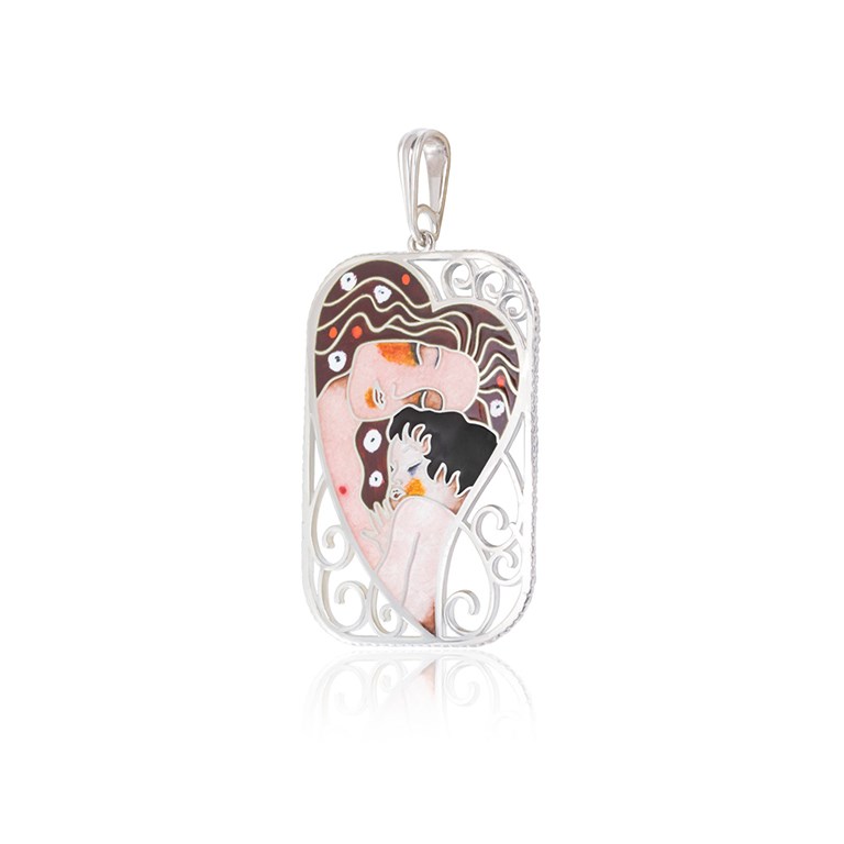 Подвеска «Материнство», созданная по мотивам картины художника Г. Климта. Выполнена из серебра 925 пробы по технологии горячего эмалирования.