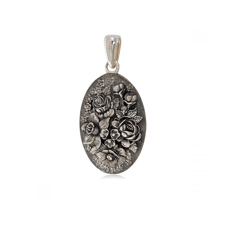 Подвеска из серебра овальная «Жостово», без золочения