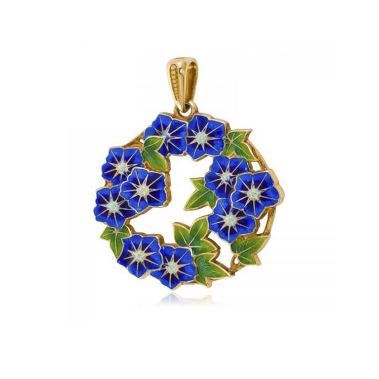 Подвеска выполнена из серебра 925-й пробы с золочением 999-й пробы по технологии горячего эмалирования.