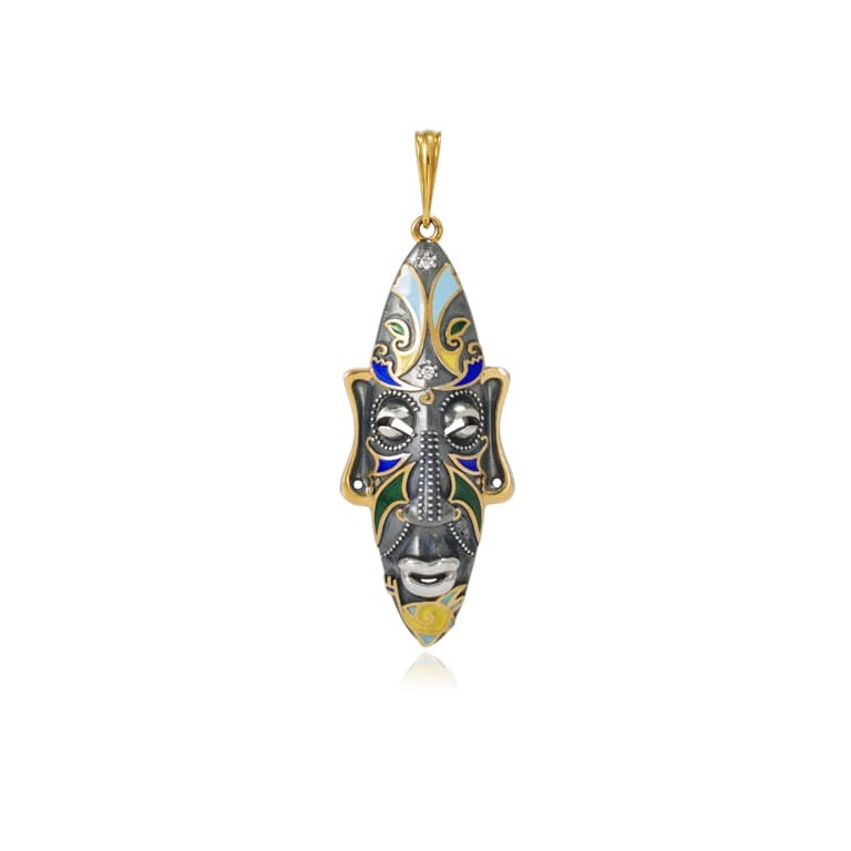 Подвеска «Саванна. Маска Оконга» выполнена в серебре 925* с золочением 999* по технологии горячего эмалирования.