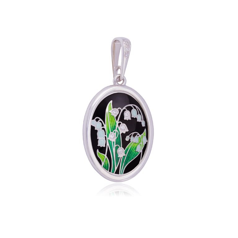 Подвеска «Ландыши» выполнена в серебре 925* по технологии горячего эмалирования, вставки – фианиты.