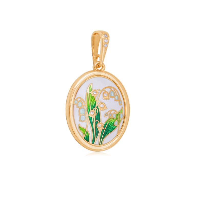 Подвеска «Ландыши» выполнена в серебре 925* с золочением 999* по технологии горячего эмалирования, вставки – фианиты.