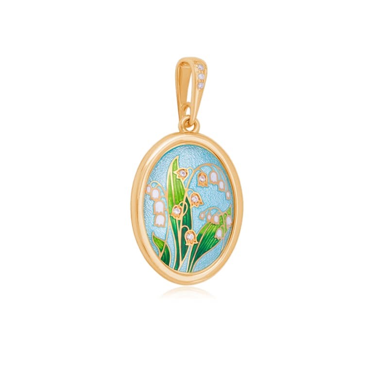 Подвеска с фианитами «Ландыши», голубая овальная (золочение) выполнена в серебре 925* с золочением 999* по технологии горячего эмалирования, вставки – фианиты