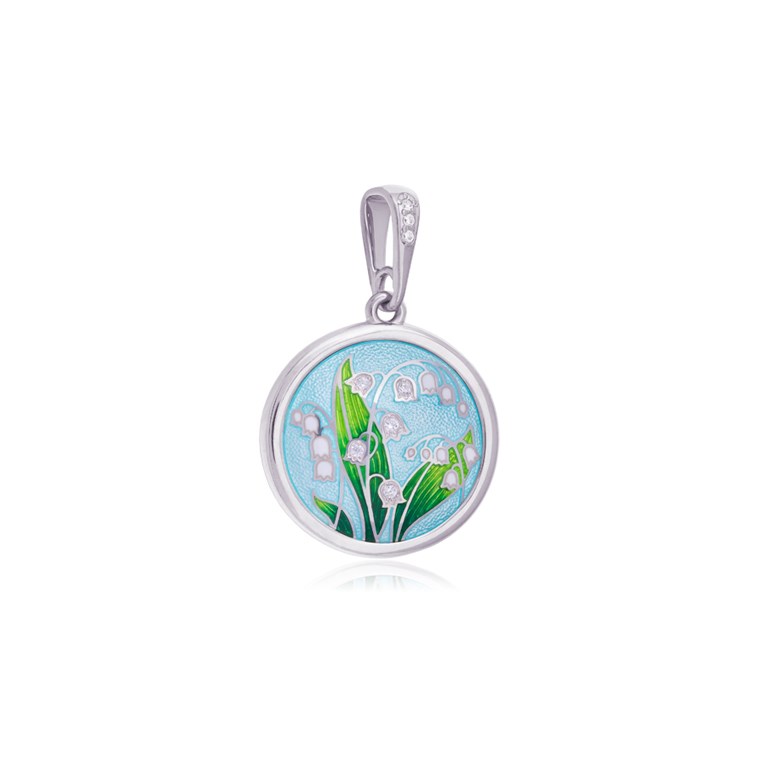 Подвеска «Ландыши» выполнена в серебре 925* по технологии горячего эмалирования, вставки – фианиты