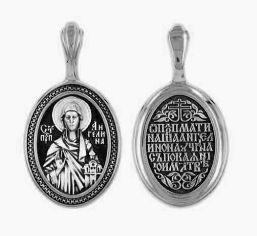 Это православное изделие - Подвеска выполнено из серебра 925 пробы. в форме овала. Поверхность изделия покрыта методом чернения (оксидирования). Подвеска имеет нанесённый лик - Святая Ангелина Сербская. Изделие входит в коллекцию "Санкт - Петербург".