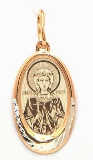 Это православное изделие - Подвеска выполнено из серебра 925 пробы. в форме маленького овала. Поверхность изделия покрыта красной позолотой 585 пробы. Подвеска имеет нанесённый лик - Святая Лариса. Изделие входит в коллекцию "Спаси и сохрани".