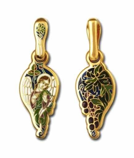 Это православное изделие - Подвеска выполнено из серебра 960 пробы. Поверхность изделия покрыта желтой позолотой 999 пробы поверх вручную обработана горячей эмалью. Подвеска имеет нанесённый лик - Ангел Хранитель. Изделие входит в коллекцию "Санкт - Петербург".