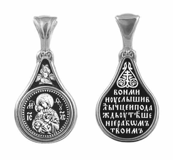 Это православное изделие - Подвеска выполнено из серебра 925 пробы. Поверхность изделия покрыта методом чернения (оксидирования). Подвеска имеет нанесённый лик - Икона Владимирская Богоматерь. Изделие входит в коллекцию "Санкт - Петербург".