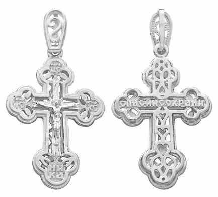 Крест серебрянный, с корундами, Спаси и сохрани, Аксиос, 2.19 гр., арт. 225533