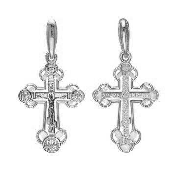 Крест серебрянный, с корундами, Спаси и сохрани, Аксиос, 1.46 гр., арт. 225666